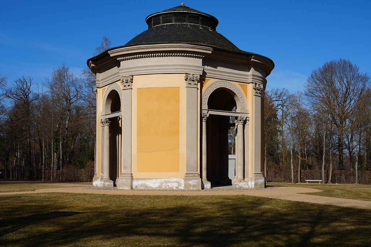 Boumann errichtete 1785/86 die beiden Pavillons am Schloss, die vermutlich schon Langhans aufgerissen hatte. Der Anfang der 1790er-Jahre am gegenüberliegenden Seeufer in Sichtachse des Schlosses errichtete Rheinsberger Obelisk sollte das Andenken des bei Friedrich II. in Ungnade gefallenen Bruders August Wilhelm von Preußen sowie vieler Heinrich nahestehender und teilweise vom König ebenfalls wenig gewürdigter Offiziere ehren, die sich in den schlesischen Kriegen verdient gemacht hatten. Bereits zu Lebzeiten ließ Heinrich seine Grabstätte in Form einer abgebrochenen Pyramide im Garten errichten, in der er 1802 beigesetzt wurde. Die französische Inschrift verfasste Heinrich selbst.